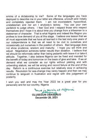 In the letter titled “My response to the open letter by Clark”, Obasanjo said: “Let me proceed with the most basic constitutional fact that you cannot have two entities in a sovereign State.”