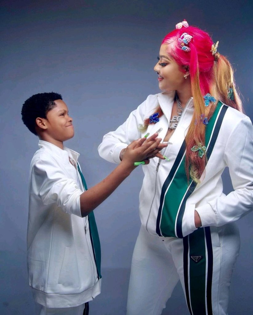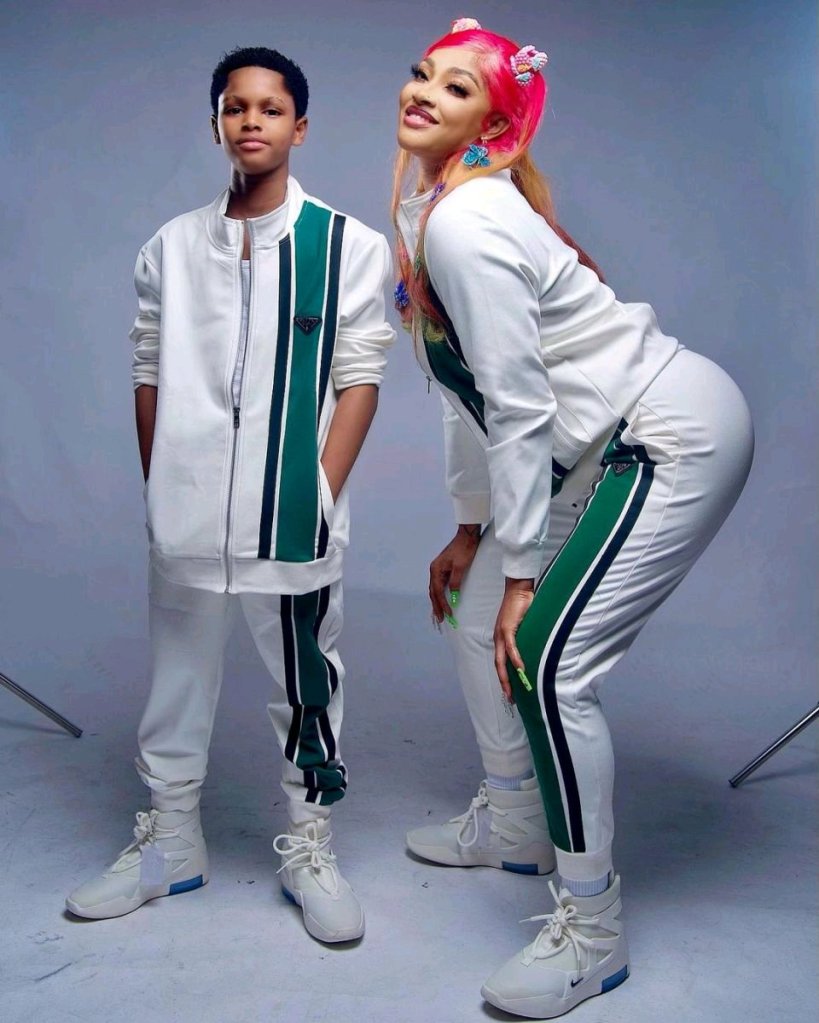 Nigerian actress and entrepreneur, Regina Daniels has posted picture of her, husband and their sun covered in mud. This is as she celebrates his birthday.